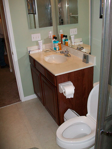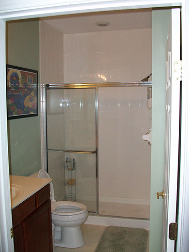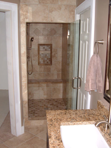 John took his first shower last night. He loved it. He was surprised that he doesn't have to use a bath mat inside it and He was amazed at the increased space. I am amazed you guys were able to take that cramped little shoe box of a room and make it so attractive. You guys are the best. I will be in touch about pulling the downstairs carpet up.