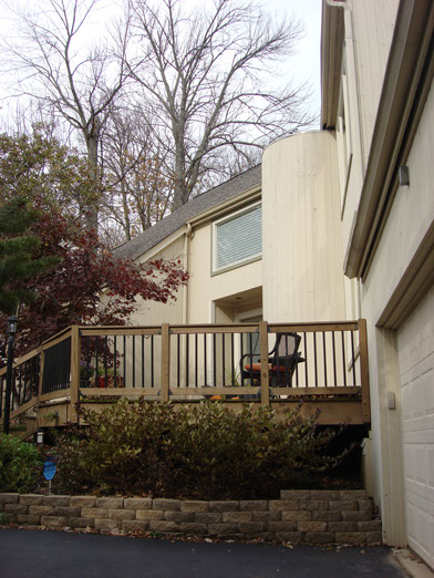 The deck looks so so so so good. John and I are both pleased. I don't know why we were surprised because everything you guys have done here has turned out better than good!!! The new deck railing is a little lower than the old one so it makes the deck look lots bigger and Scott was right about the posts!!!! They look great against the brick house. My Dad can't wait to see it!!!!